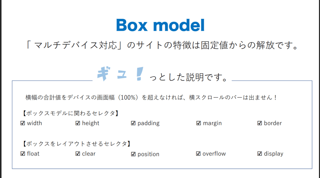 BOXモデルは以下の画像の10個を覚えておけば基礎が出来る