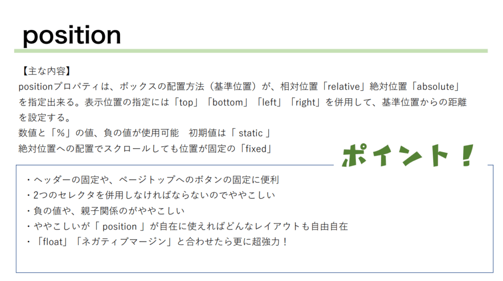 positionを使うのが一番ややこしいと斉藤先生は動画で言っていました。